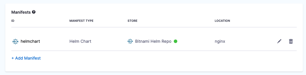- Under the Manifest section, click Add Manifest or edit the existing manifest.