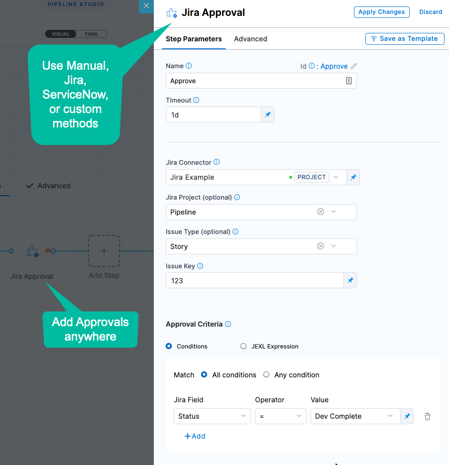 Add checks at any point in your process to ensure that deployments are safe: