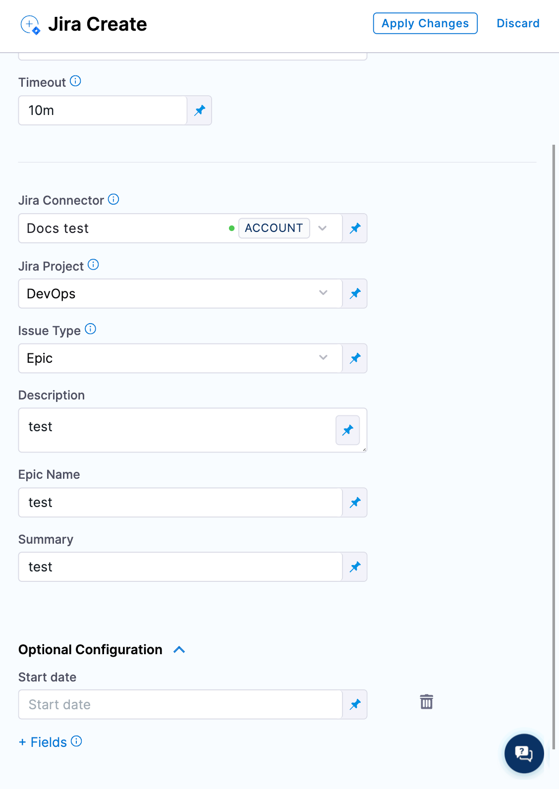 1. Select Apply Changes. The Jira Create step is added to the stage.