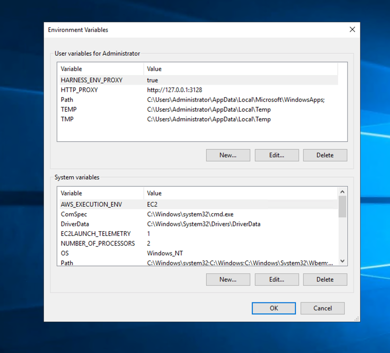 HARNESS_ENV_PROXY: boolean value for whether or not the proxy is used.HTTP_PROXY: the proxy URL.
