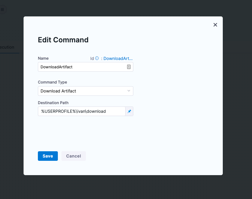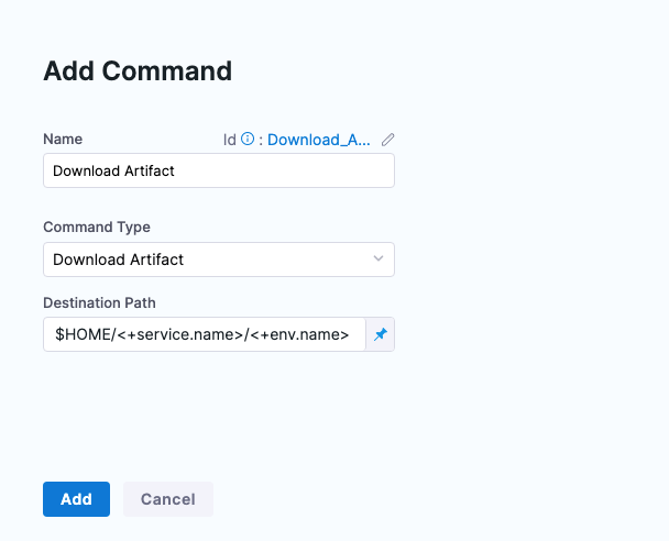 Using the Download command type, you can download the deployment artifact onto the target hosts of the deployment.