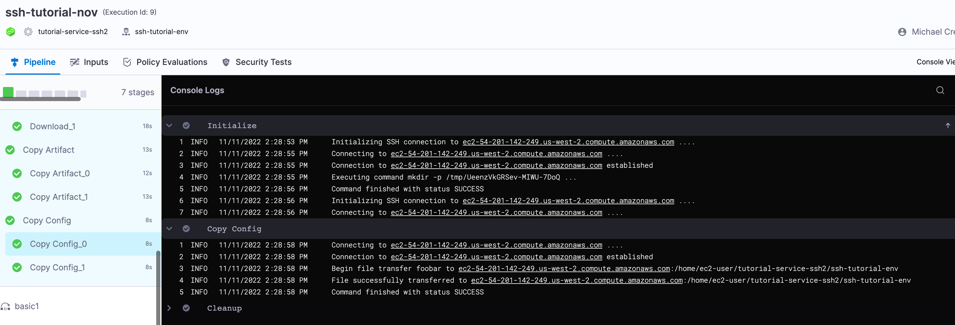 For example, a destination path for a stage that deploys todolist.war using a service named tutorial-service-ssh2 to an environment named ssh-tutorial-env will look like this: