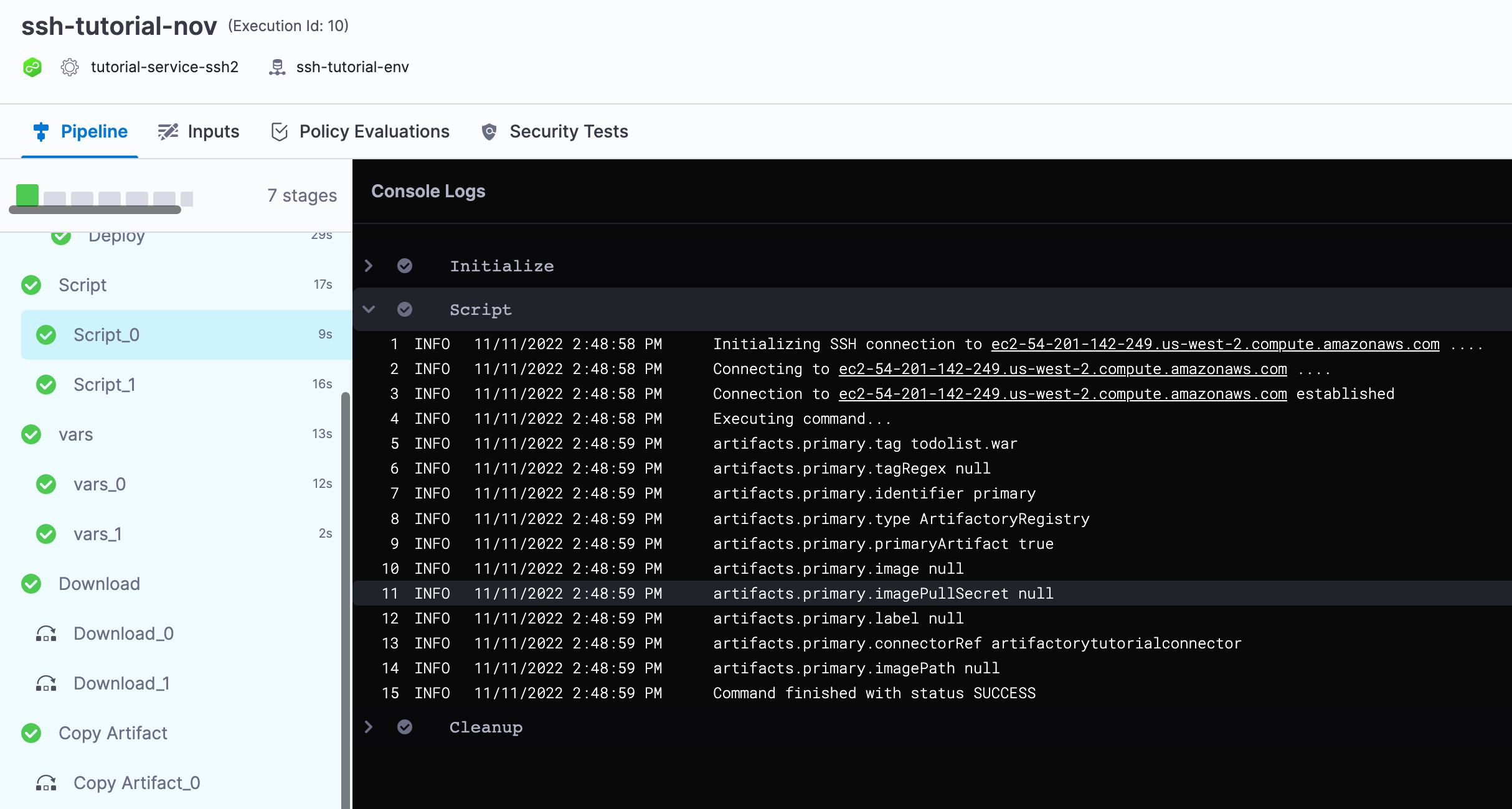 echo "artifacts.primary.imagePath" <+artifacts.primary.imagePath>Here's an example of an executed script command: