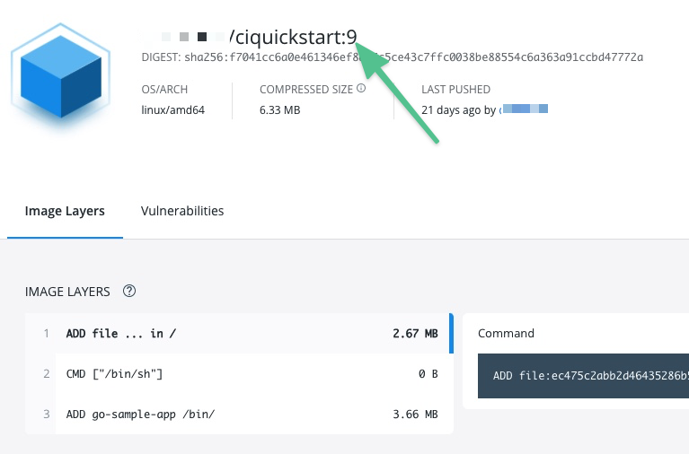 When you push an image to a repo, you tag the image so you can identify it later. For example, in one pipeline stage, you push the image, and, in a later stage, you use the image name and tag to pull it and run integration tests on it.