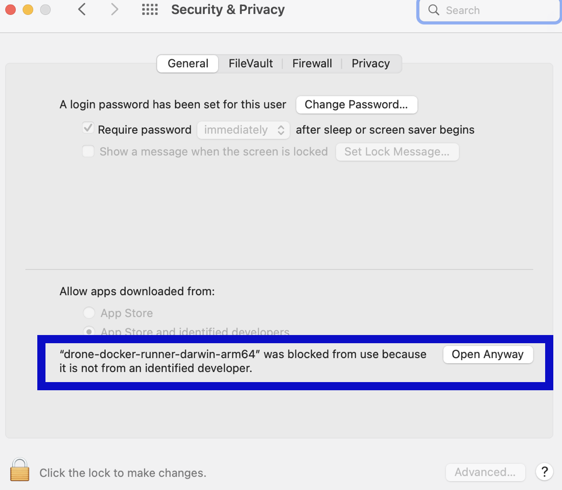6. If macOS Gatekeeper stops the installation because it can't check for malicious software, you need to modify Security & Privacy settings to allow this app to run.