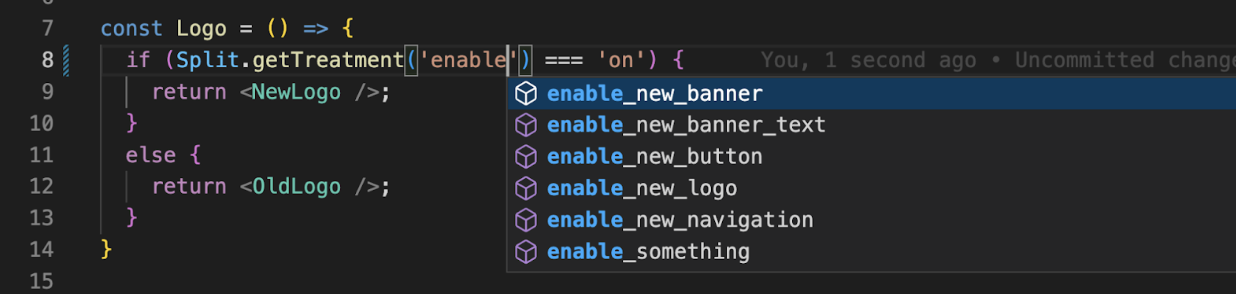 • Automatic completion. When you start typing a string, a list of matching feature flags names automatically appears.