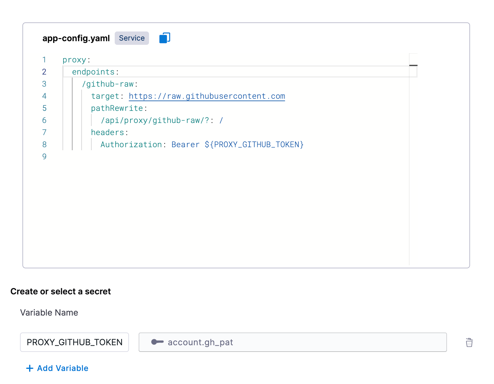 /api/proxy/github-raw/tohttps://raw.githubusercontent.com/and appending anything aftergithub-raw/to thegithubusercontent.com/URL - Passing an authentication header using the variable