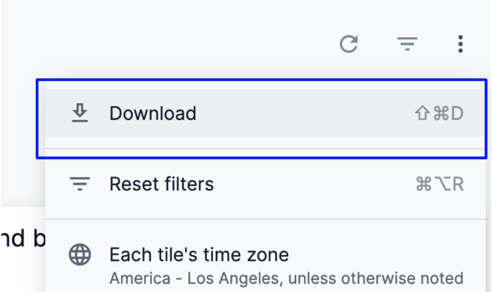 1. To download the entire dashboard, select Download from the dashboard’s three-dot menu.