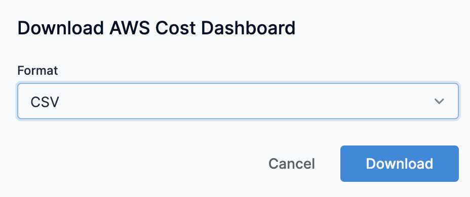 1. In Download AWS Cost Dashboard, in Format, select CSV from the Format drop-down menu.