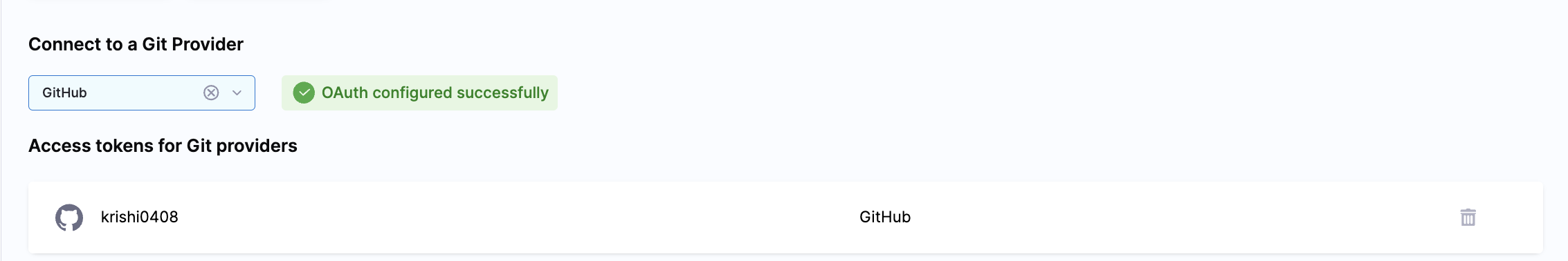 In this example, we are configuring it for Github, similarly it can be done for Gitlab and BitBucket.