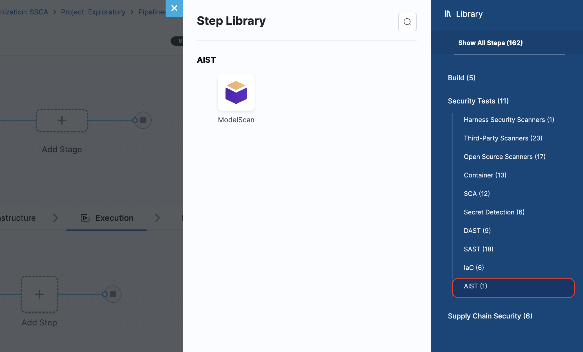 Introduced a new AIML scanner category dedicated to listing all AI/ML scanners. The ModelScan step is now included under this category (STO-9830).