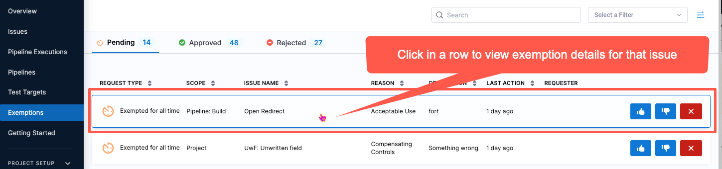 • Fixed an issue where the View Execution Results option on the Exemptions page did not route correctly to the pipeline execution window. This is fixed by correcting the projectId and orgId to the URL (STO-9658, ZD-91336).