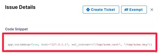 • Bandit scan results have been enhanced. When you open the Details pane for a detected issue, the Raw Details JSON now includes links to further information under _rawIssueCwe : link and _rawMoreInfo. (STO-5422)