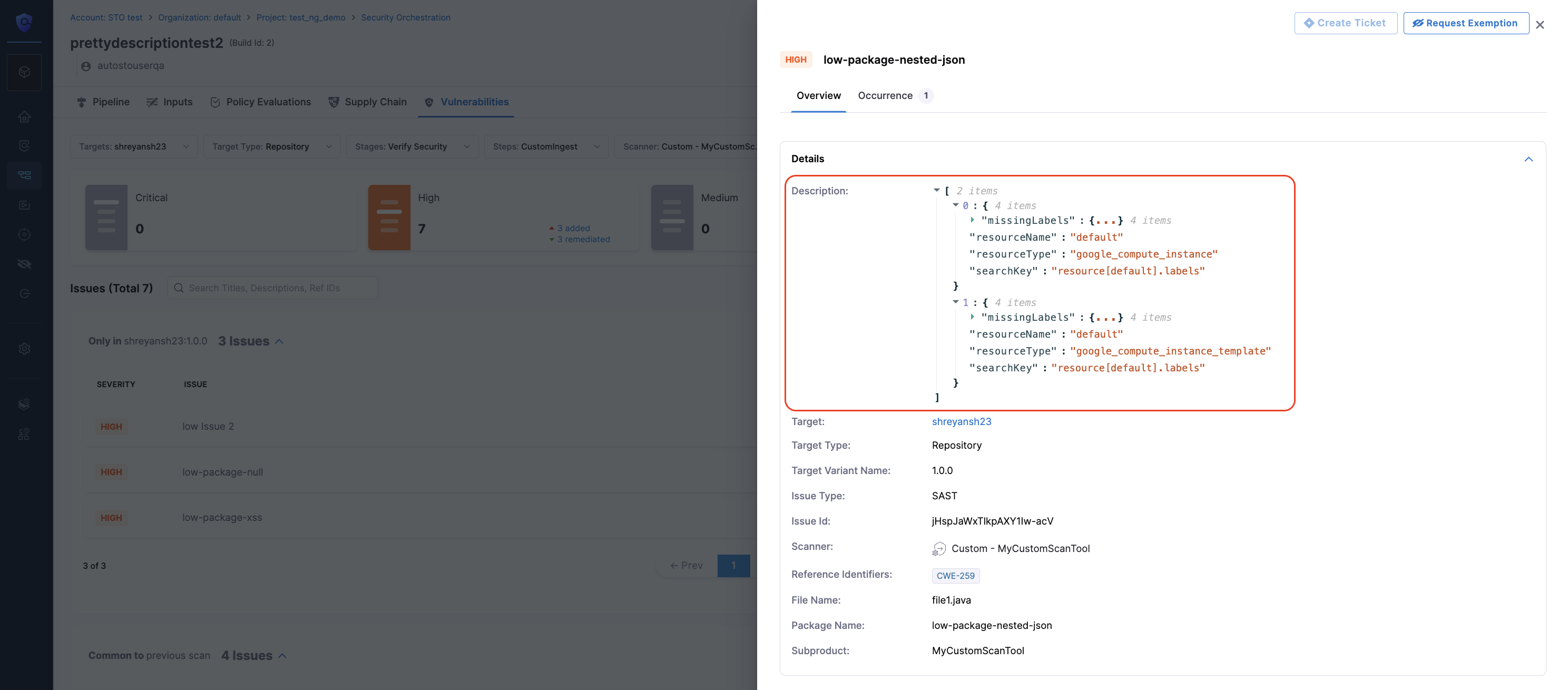 • Dedicated Security Exemptions Section: Ability to grant and manage security exemptions by SecOps owners on identified vulnerabilities or issues during security testing. Exemptions can also be made in the STO Pipeline against specific issues.